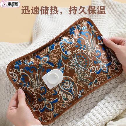 乖乖兔丝光布暖手宝热水袋充电式热宝烫手型国风中老年防爆暖水袋