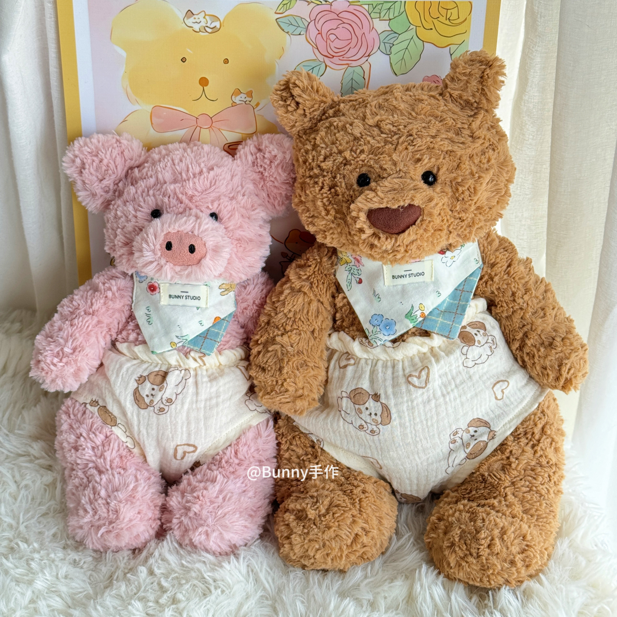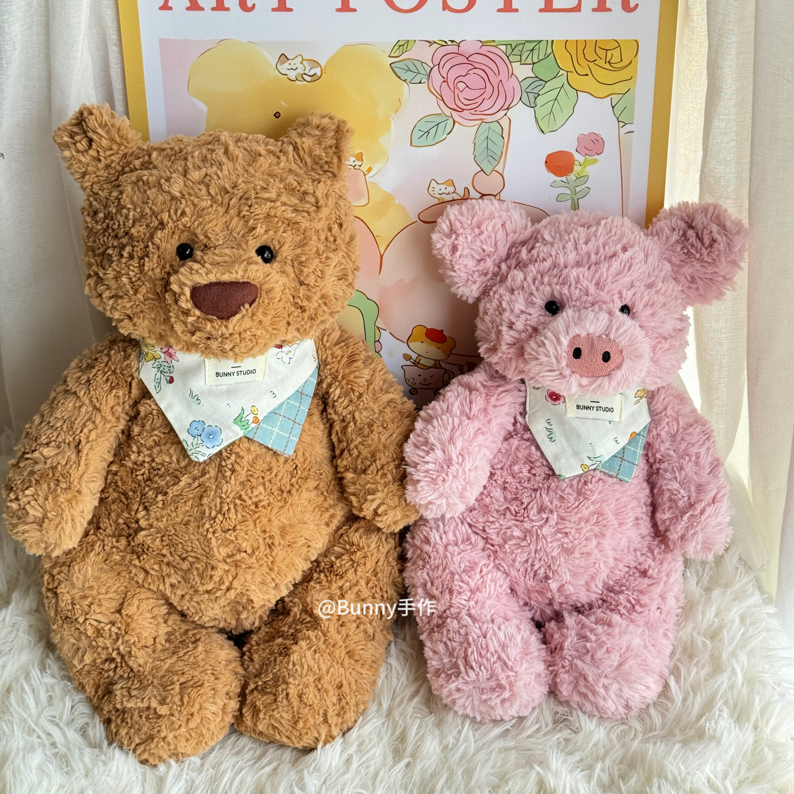 现货巴塞罗熊围兜可爱小熊生日围兜棉质原创自制三角巾