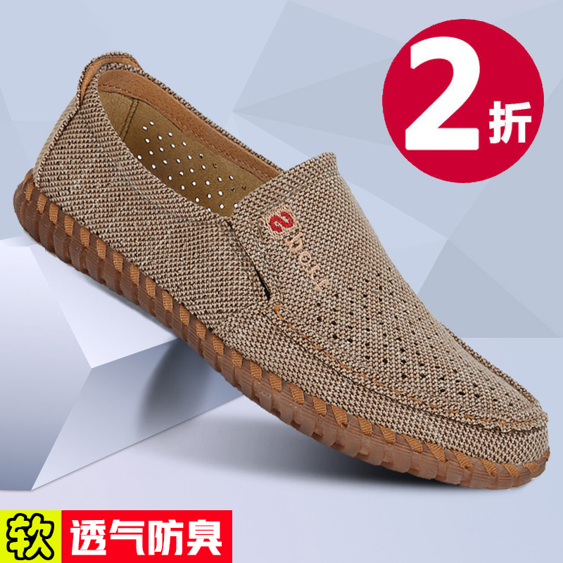 老北京布鞋男夏秋季休闲牛筋软底单鞋中老年爸爸镂空透气帆布鞋男