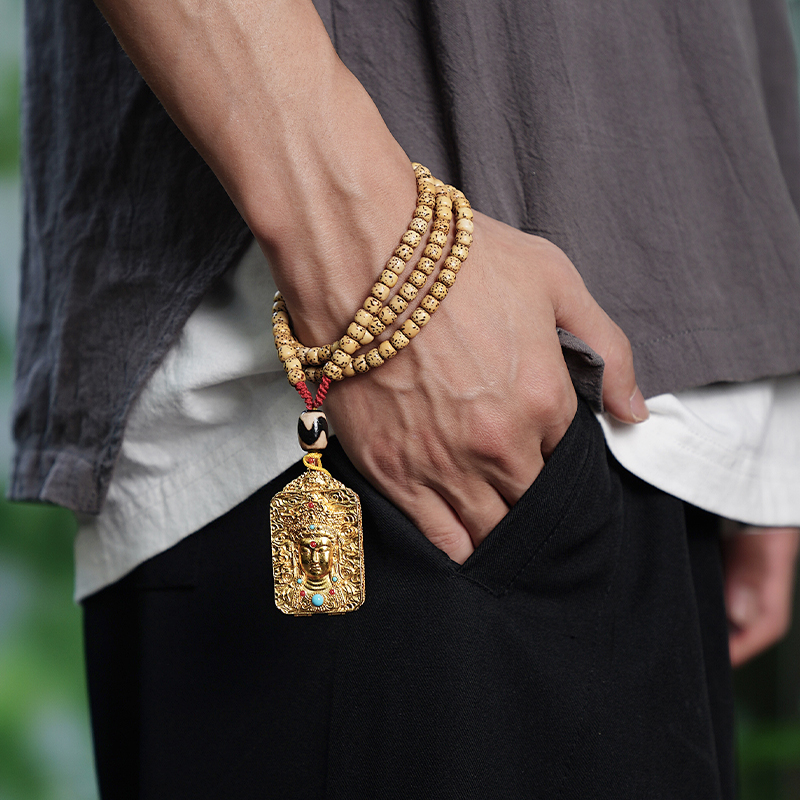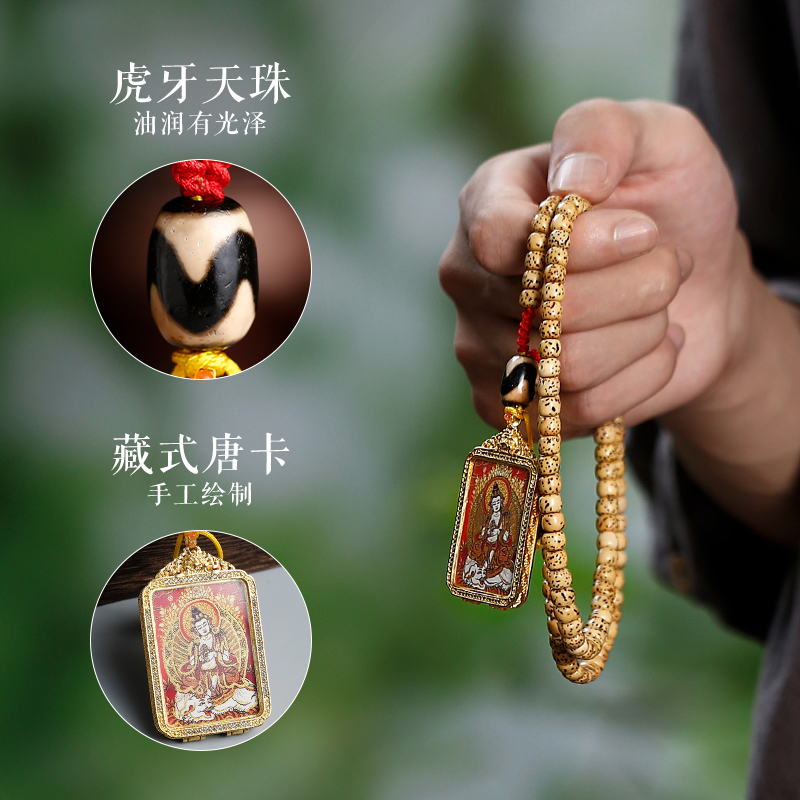 陈籽星月菩提手串原生态桶珠原籽佛念珠文玩配饰藏式唐卡生肖项链