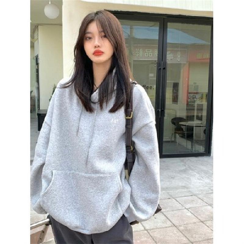 加绒连帽卫衣女情侣装2025秋冬宽松bf慵懒风休闲外套帽衫女装