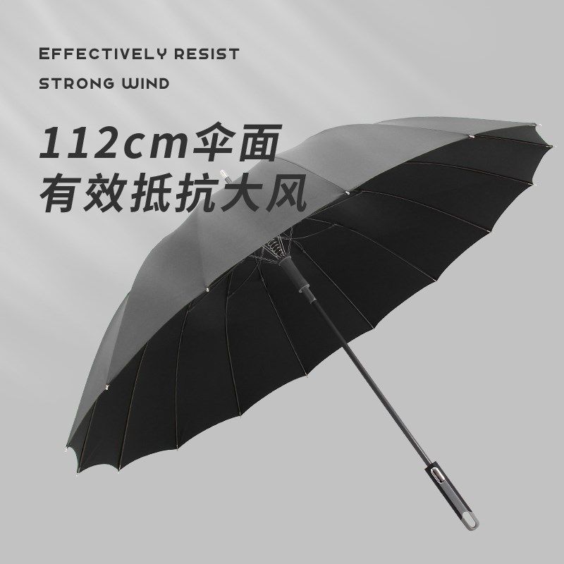 优选16骨雨伞定制可印logo批长弯柄礼品伞发定做直柄黑色大号雨伞