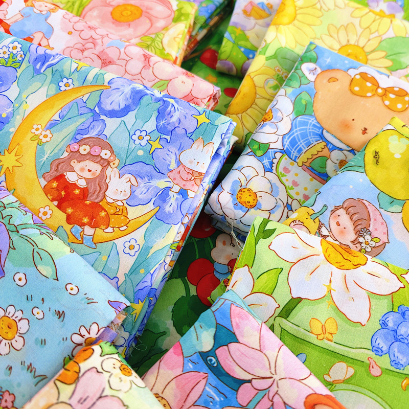 全棉40支甜美治愈系卡通插画纯棉布料连衣裙装饰睡衣家居手工布料