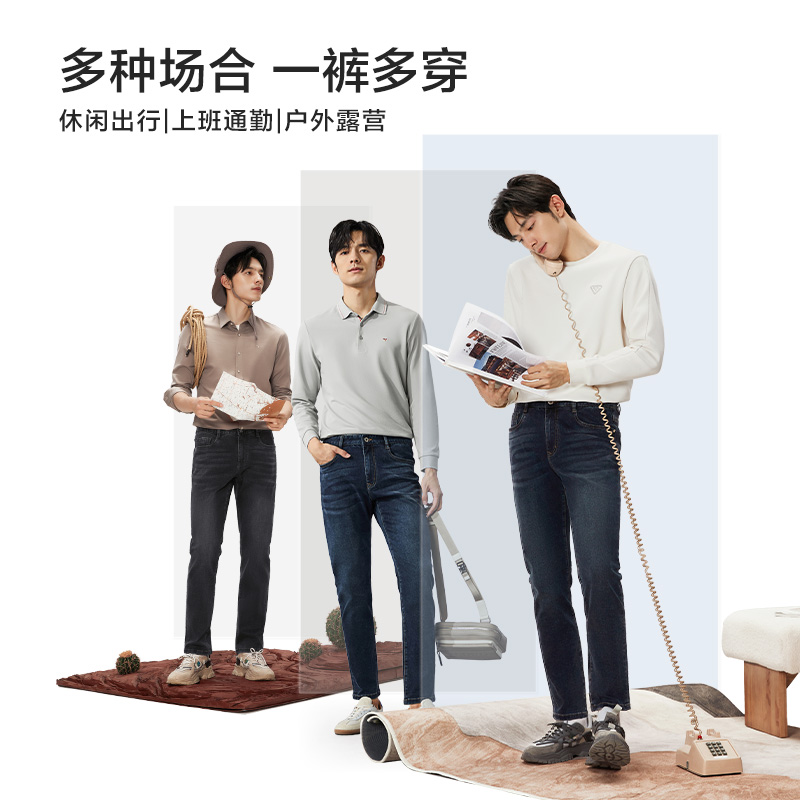 【清仓】柒牌男士牛仔裤男2025秋季水洗宽松直筒休闲百搭中年长裤