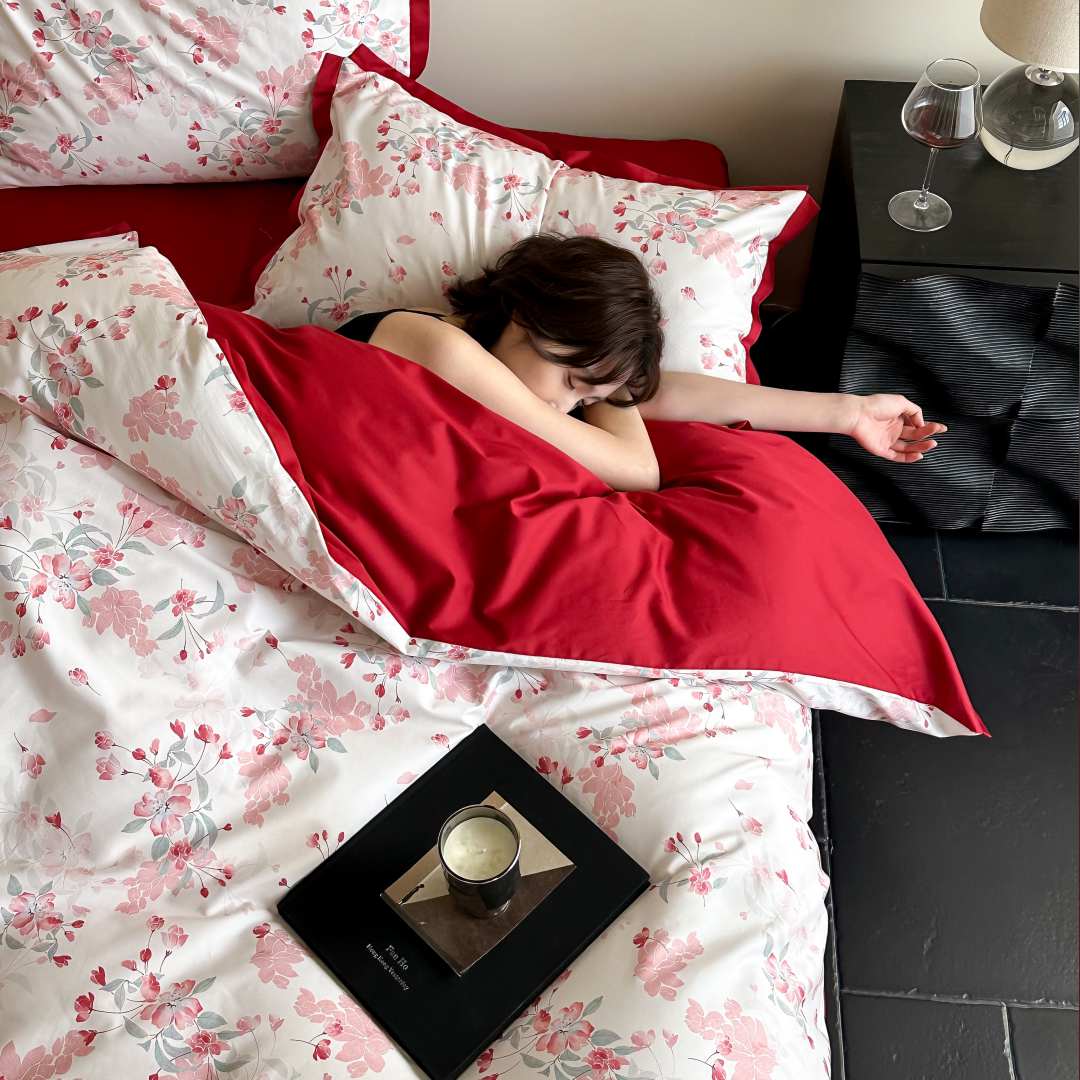 浪漫海棠花全棉婚庆四件套100S澳棉纯棉印花被套红色结婚床上用品