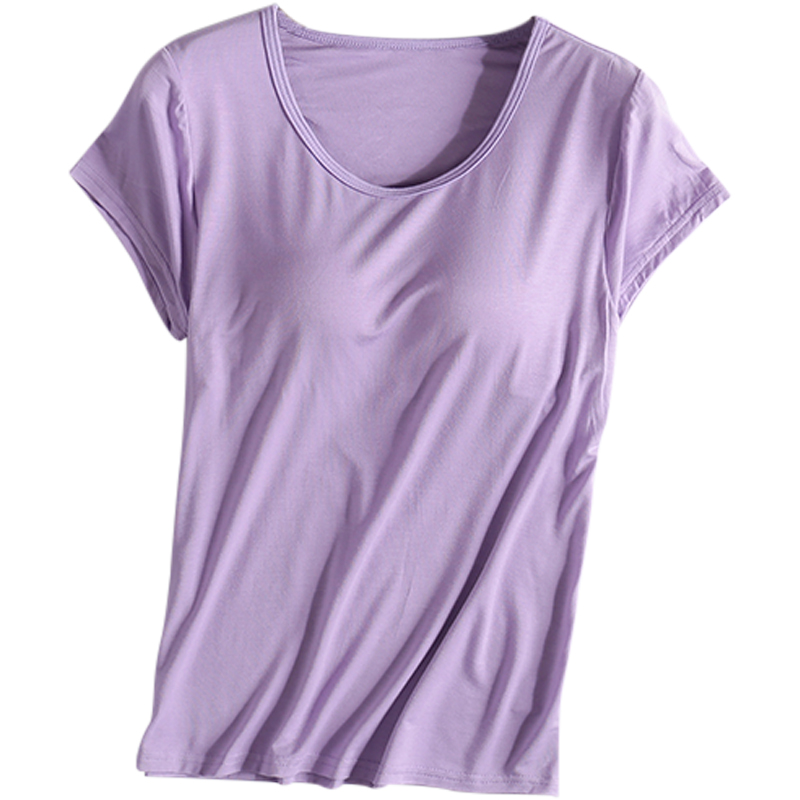 莫代尔棉带胸垫短袖T恤免文胸罩杯一体半袖背心家居睡衣瑜伽打底