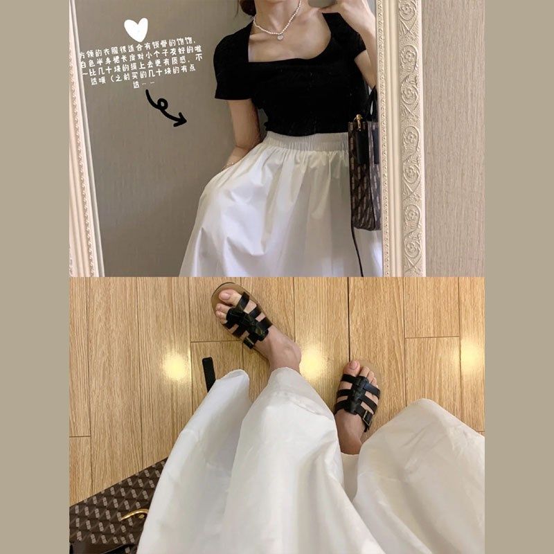 法式a字伞裙两件套装女夏小个子气质白色高腰显瘦蓬蓬裙半身长裙