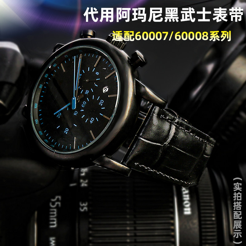真皮手表带适配阿玛尼黑武士AR60008 60012 2433商务牛皮男表链22