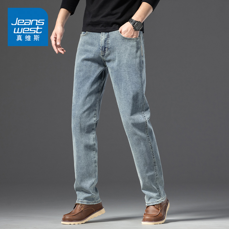 KZ真维斯秋冬季牛仔长裤男士直筒宽松高端潮牌休闲男裤子弹力弹性