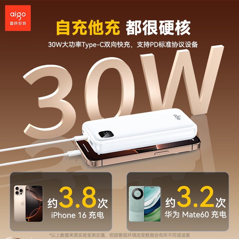 爱国者30W充电宝20000毫安