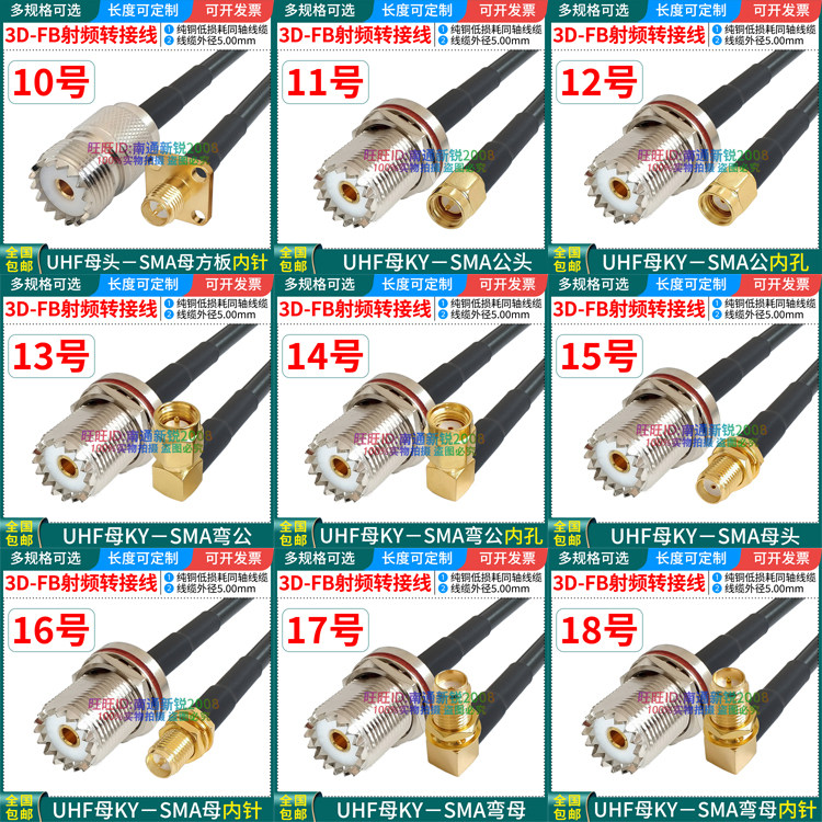 全铜3D-FB电缆SL16/UHF/M-KY转SMA-J公母头车载电台射频延长馈线