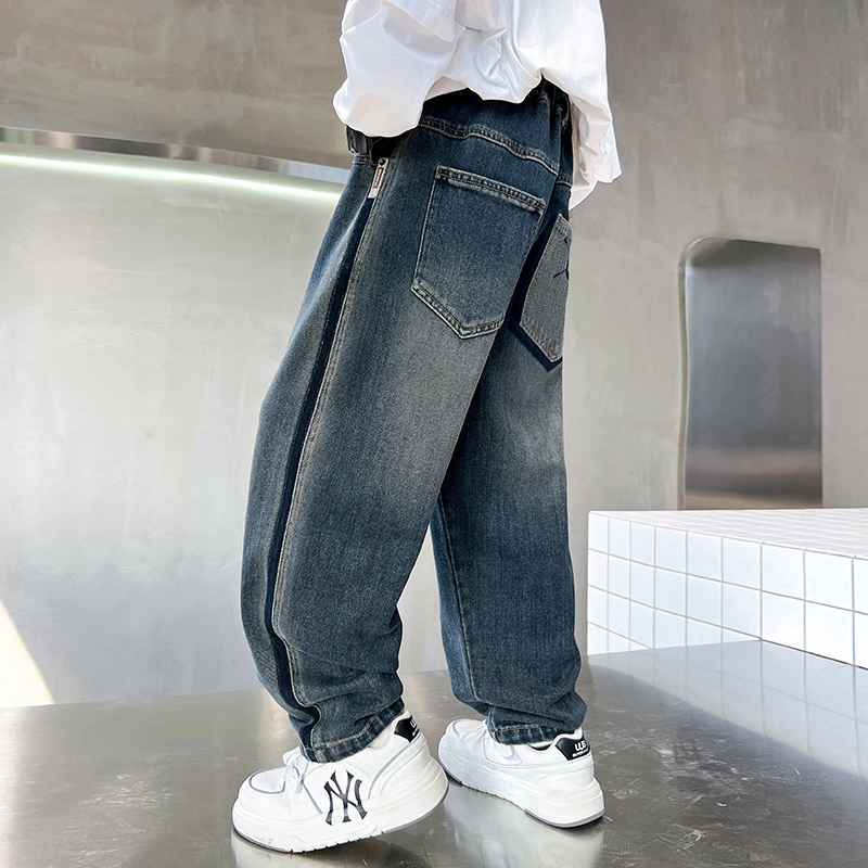 男童秋装裤子2025新款中大童痞帅风秋季男孩儿童春秋款直筒牛仔裤