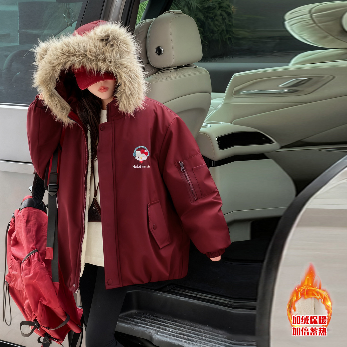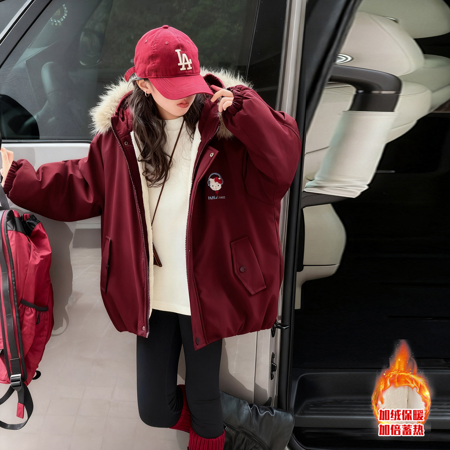 女童加厚kt猫派克服冬季2025新款儿童棉服冬装女大童毛领加绒外套