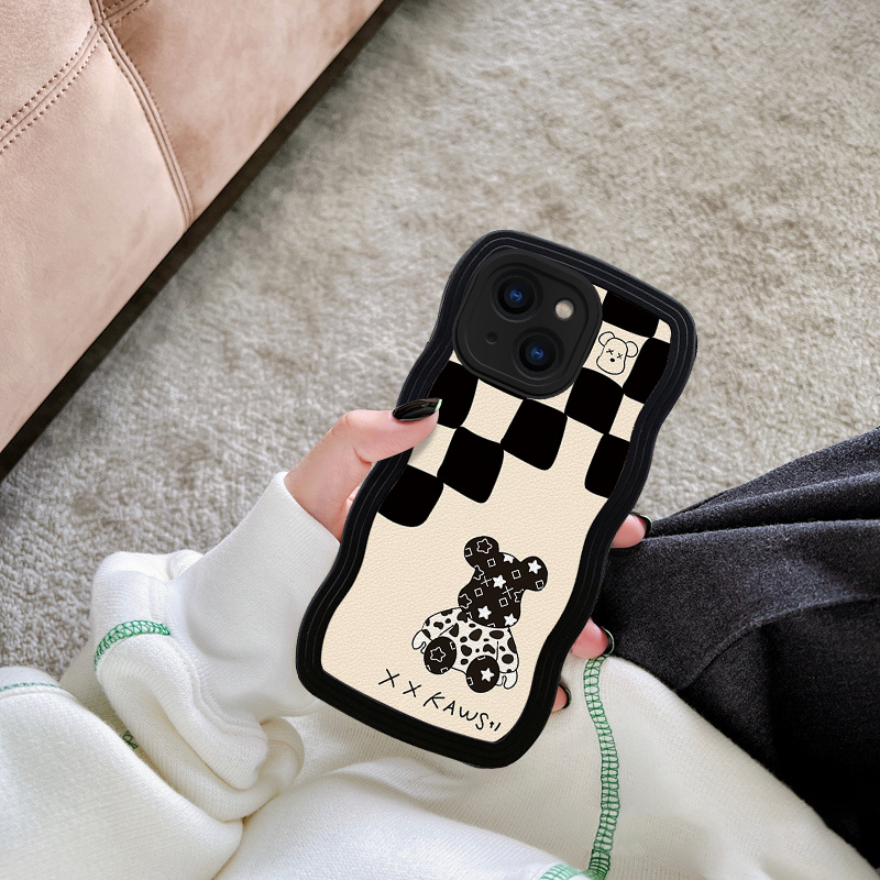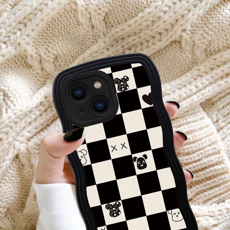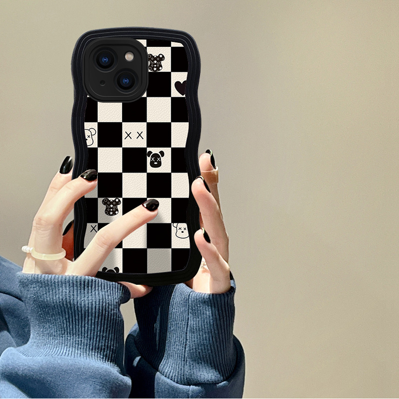适用于苹果15Pro手机壳13mini格纹12ProMax暴力熊11硅胶14保护套XS波浪边6s镜头全包8Plus防摔7潮