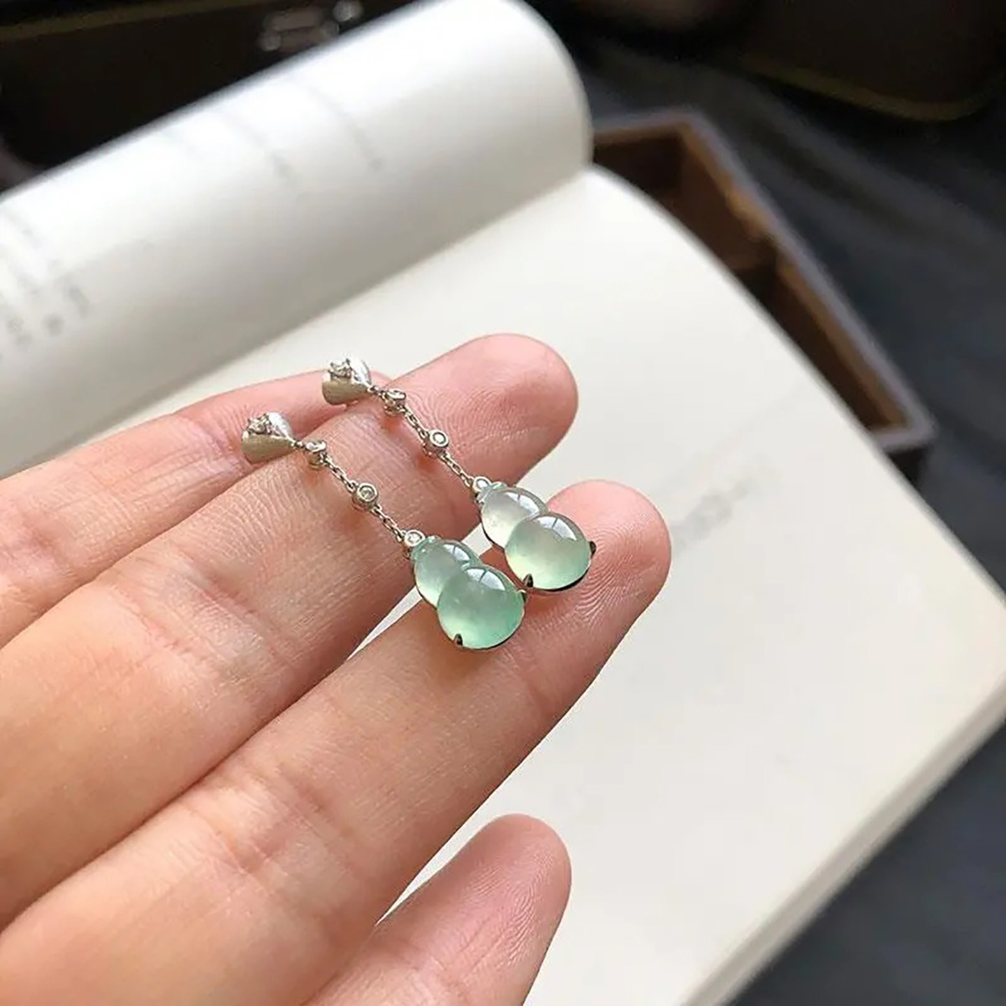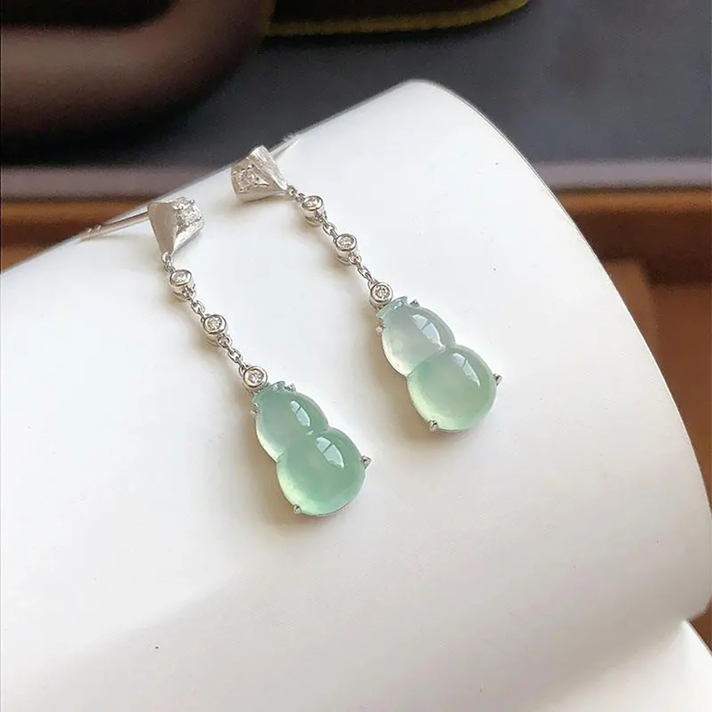 新款S925银镶嵌天然冰种玉髓葫芦耳钉气质百搭时尚女神长款耳饰