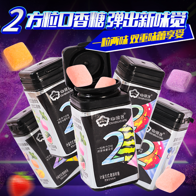 方粒口香糖木糖醇维C清新口气糖果随身携带零食水果薄荷味糖瓶装