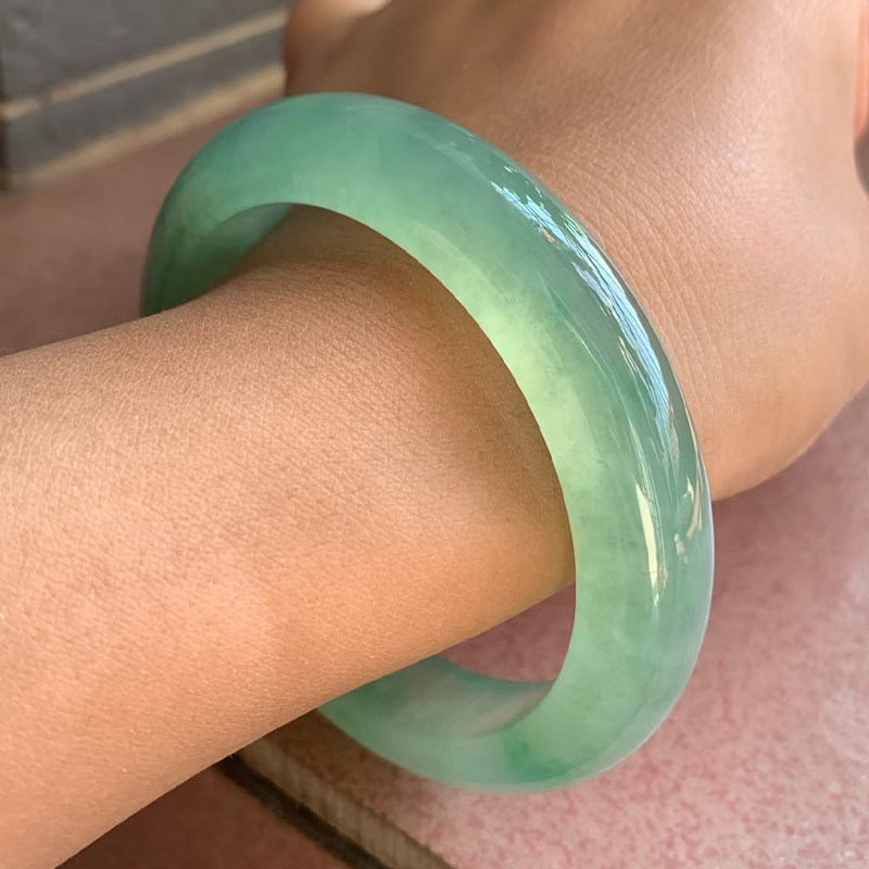 曼德勒工厂海外购天然缅甸翡翠圆条玉手镯直播间专拍链接