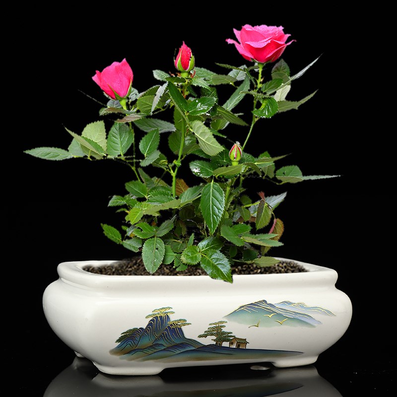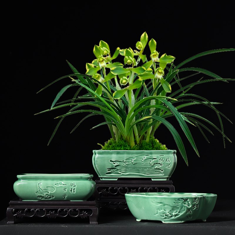 长方形花盆多肉陶瓷花盆紫砂胎青瓷哥窑手绘兰花盆室内盆景飘枝盆