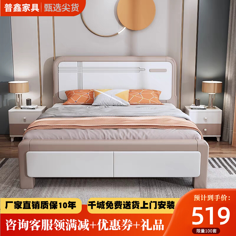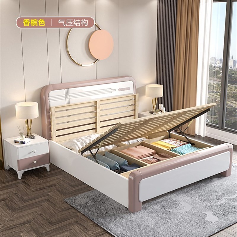 实木床现代简约主卧1.8米婚床北欧风格轻奢高箱储物大床1.5双人床