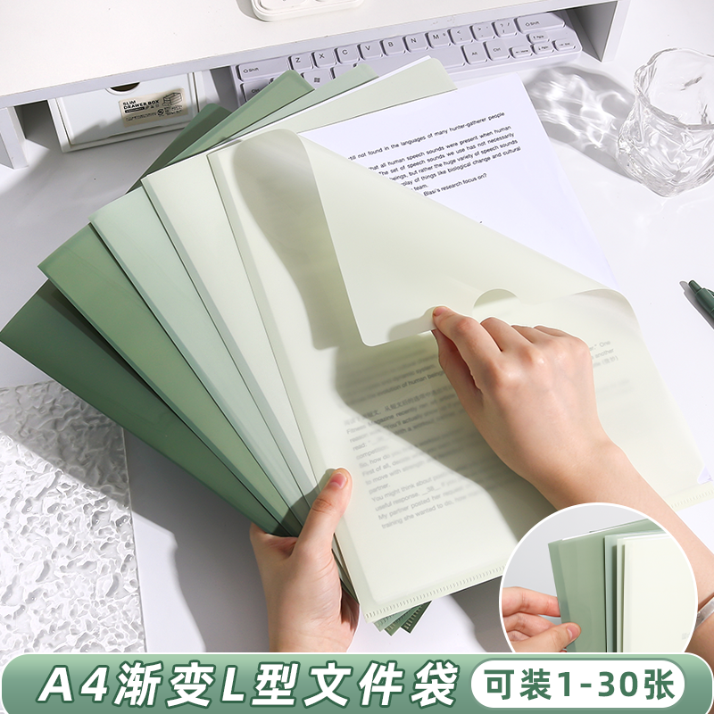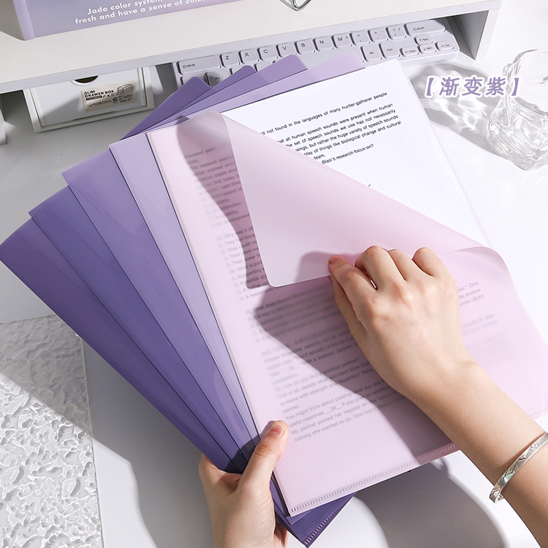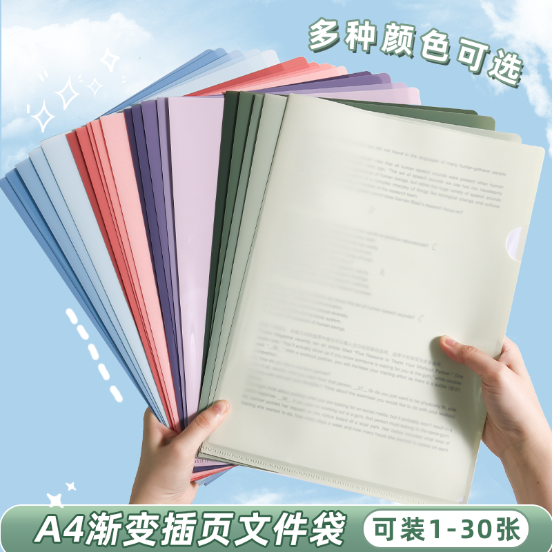A4纸单页文件夹渐变L型文件袋透明插页收纳夹资料合同单片档案夹