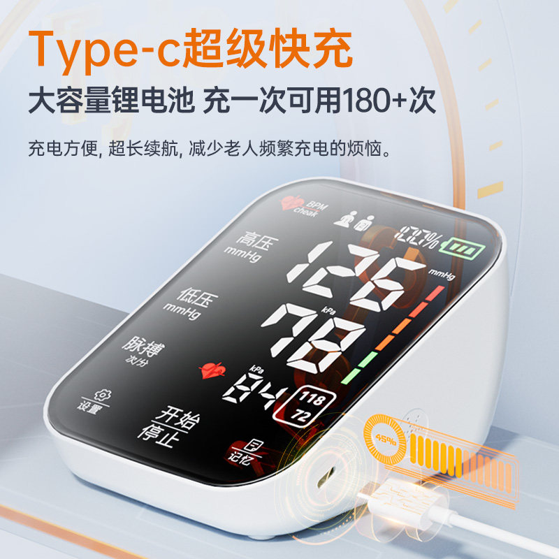 医用精确血压计家用臂式电子测量仪充电正品量血压全自动测压器高