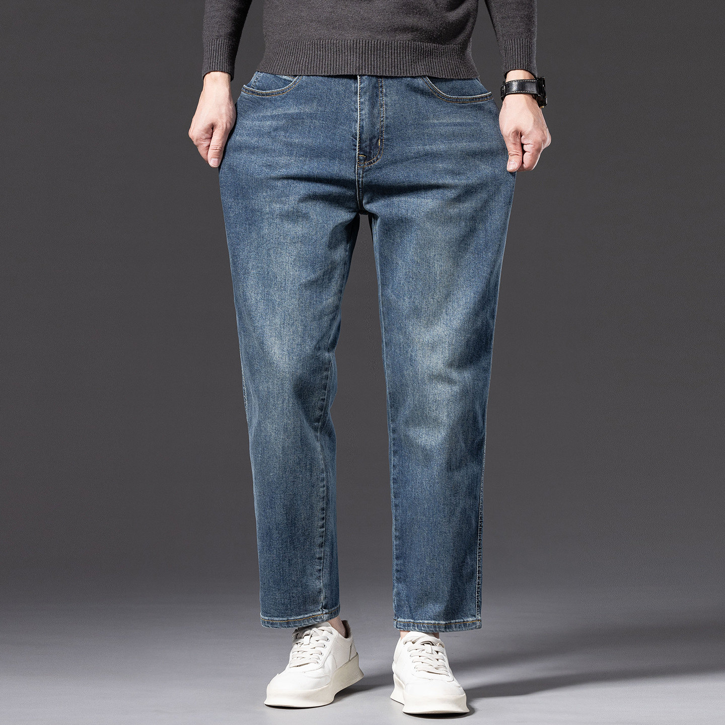 广州新塘九分牛仔裤男宽松直筒小个子弹力休闲男裤大码高端9分裤