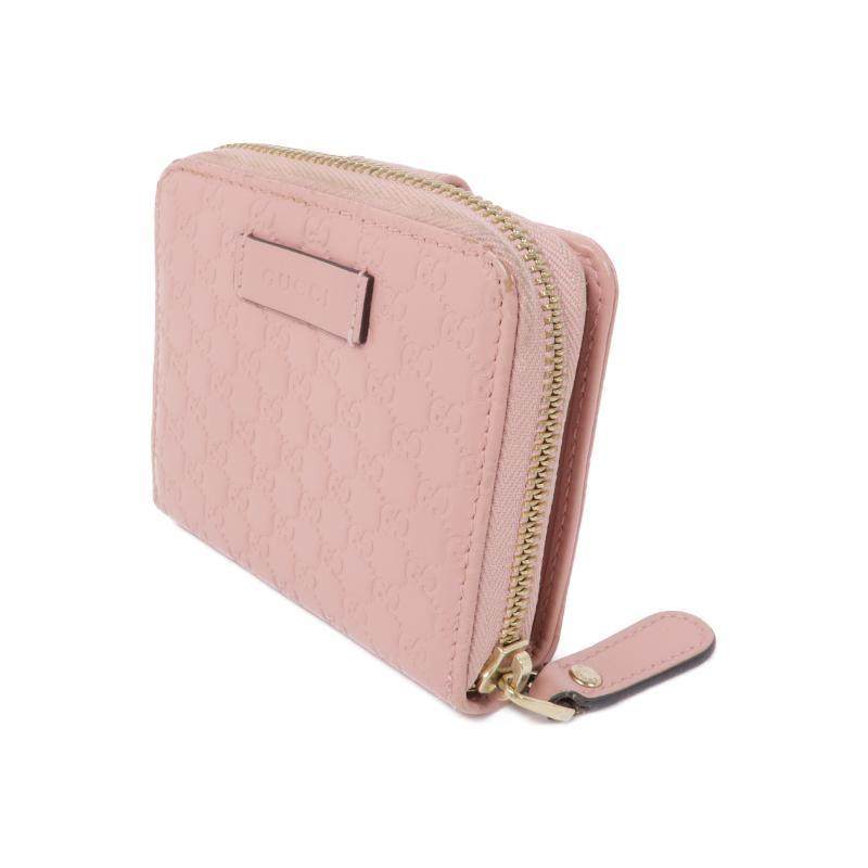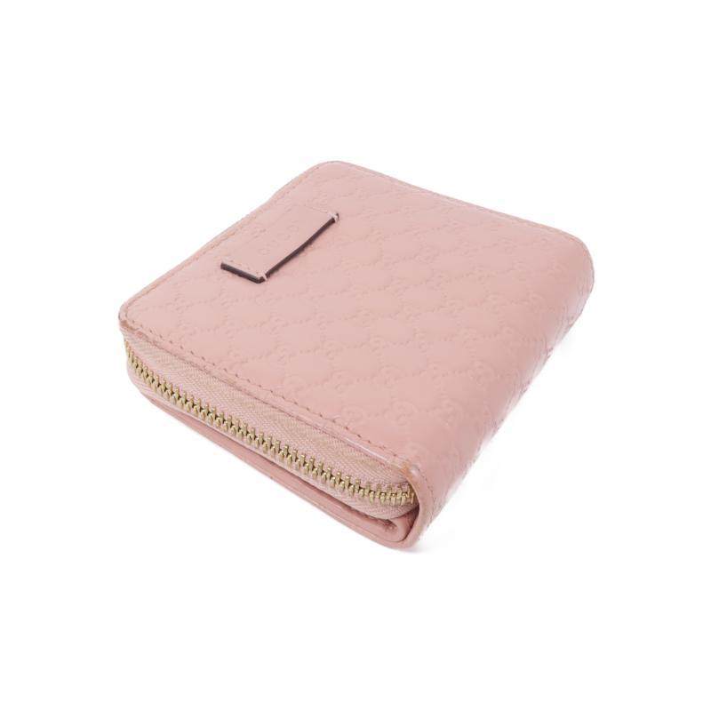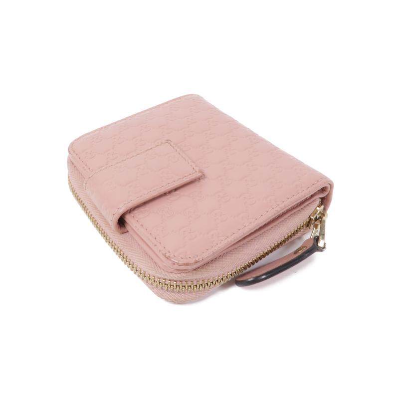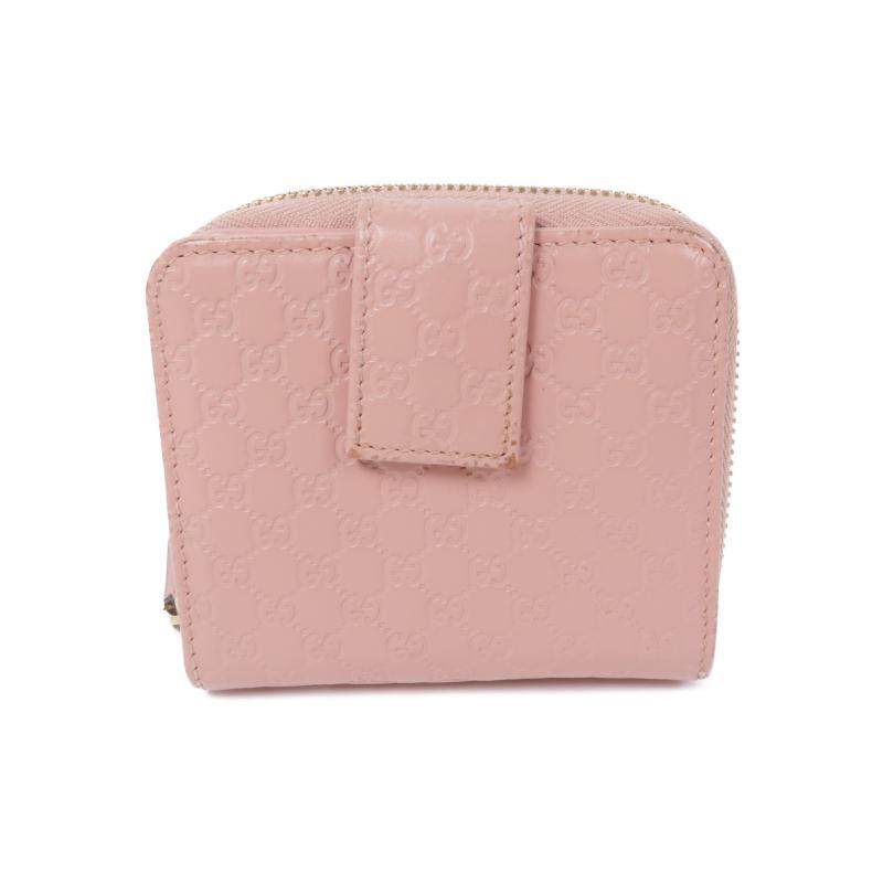 中古Gucci古驰女B级9新Bi-fold wallet双折钱包牛皮短钱包粉色