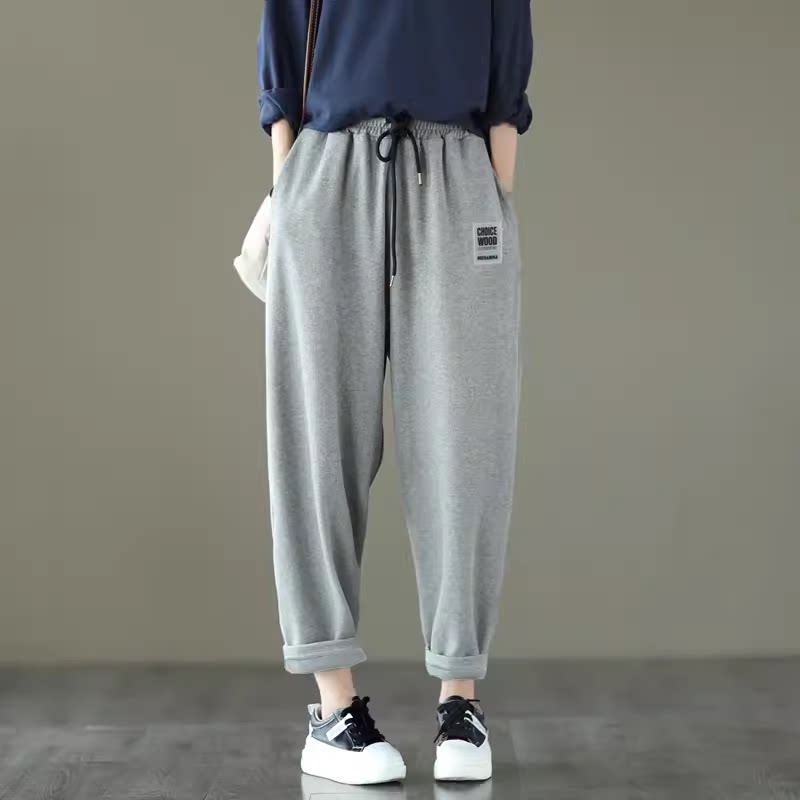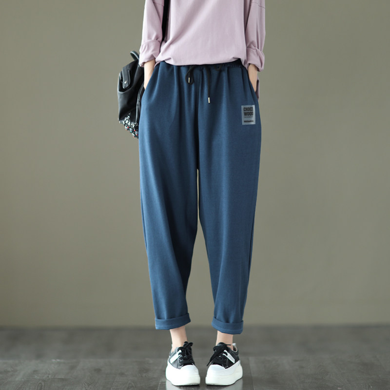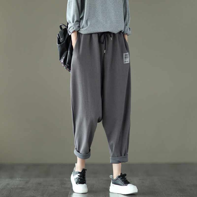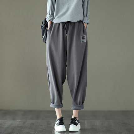2026春款复古针织棉卫裤松紧腰休闲哈伦裤长裤显瘦宽松纯色运动裤
