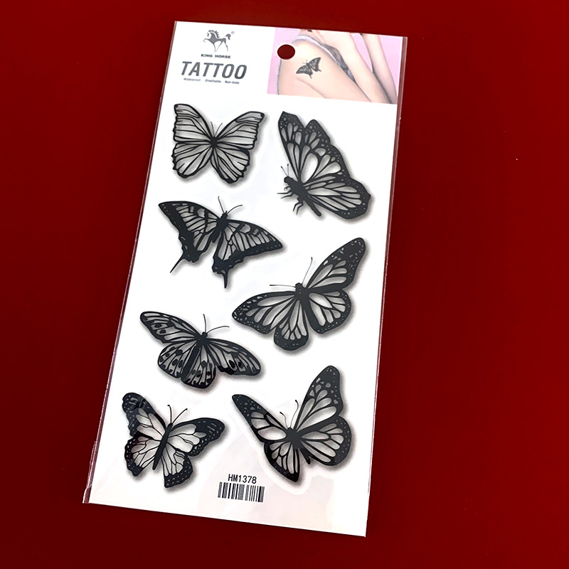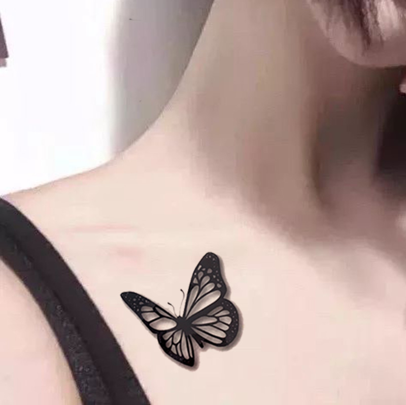 纹身贴防水女仿真持久黑白3D蝴蝶逼真纹身贴肩膀脚踝大腿