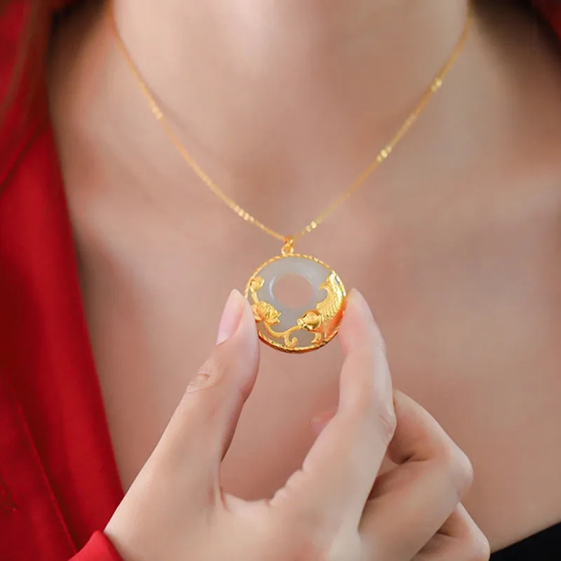玉坠女吊坠999足金金镶玉和田玉石鲤鱼黄金项链纯金莲花挂坠男女