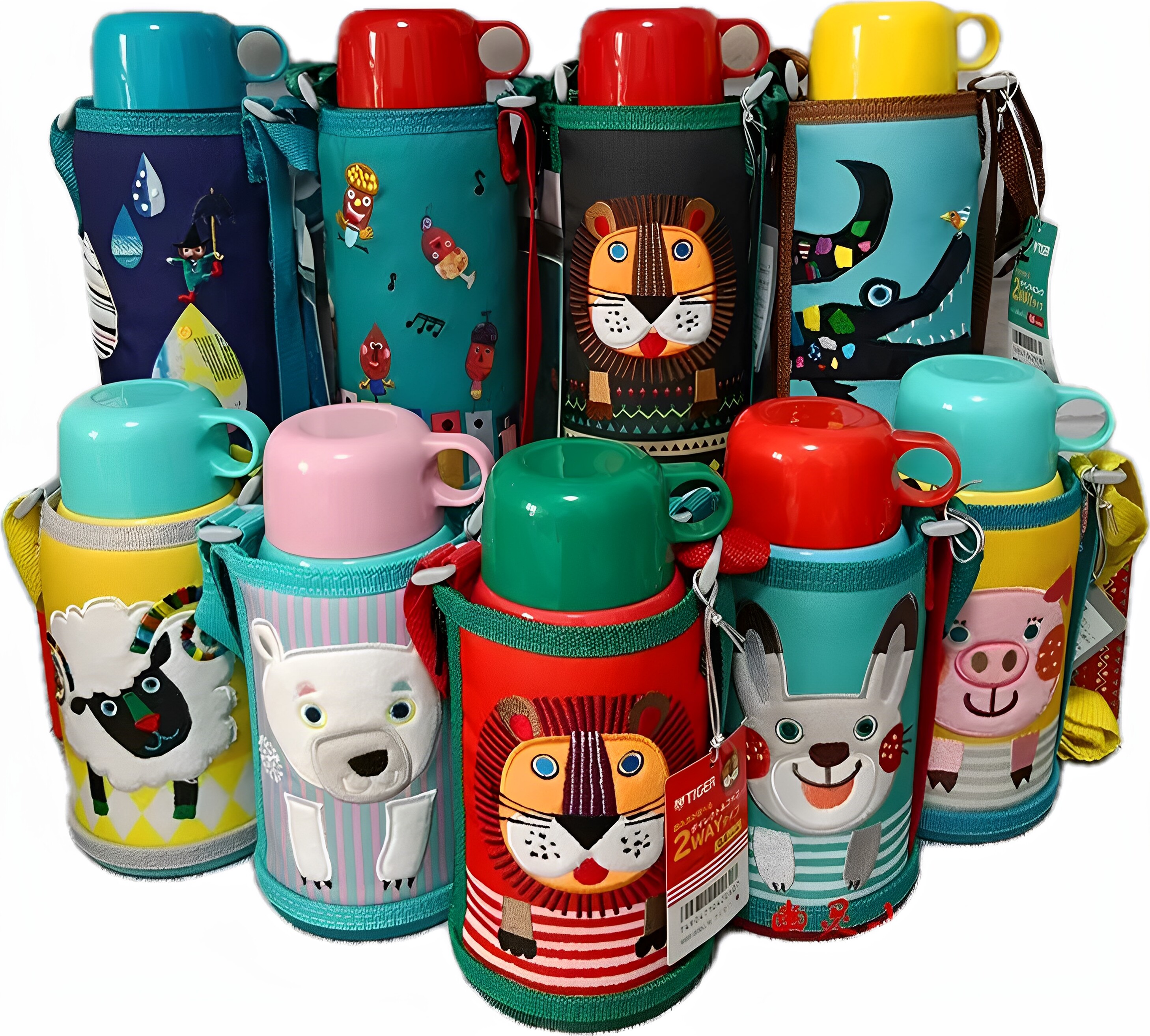日本TIGER/虎牌儿童保温杯吸管杯600ml幼儿园水壶双盖双用卡通款