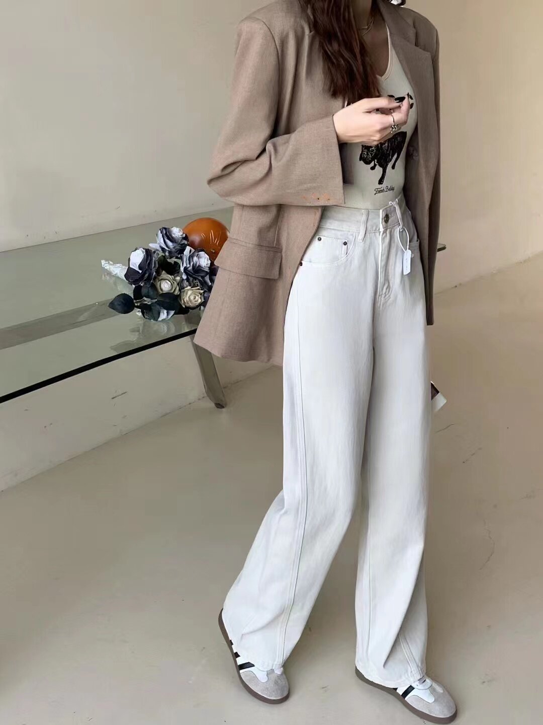 韩版高腰莱赛尔垂感防褪色拖地阔腿裤女秋冬季宽松百搭显瘦牛仔裤