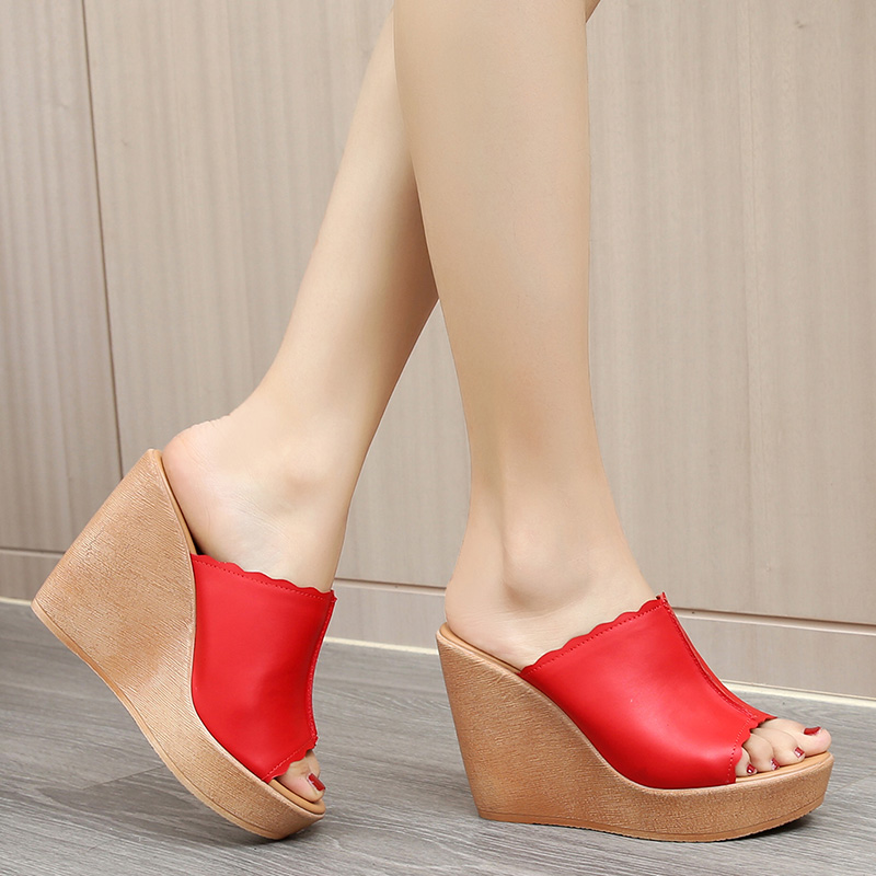 真皮坡跟凉拖鞋外穿牛皮松糕高跟