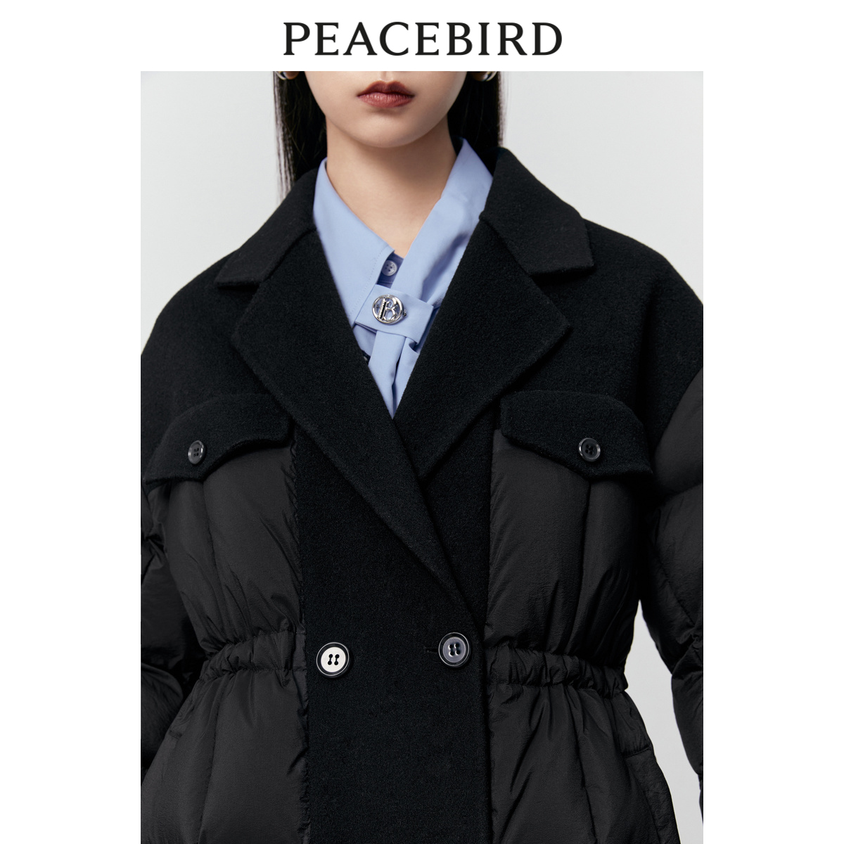 【商场同款】太平鸟女装2024冬新双面呢拼接绗缝羽绒服A1ACD4288