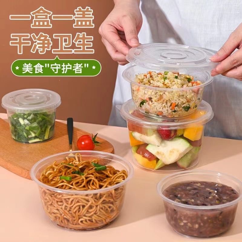 一次性碗快餐盒冰粉碗塑料打包盒圆形饭盒带盖家用加厚圆碗外卖