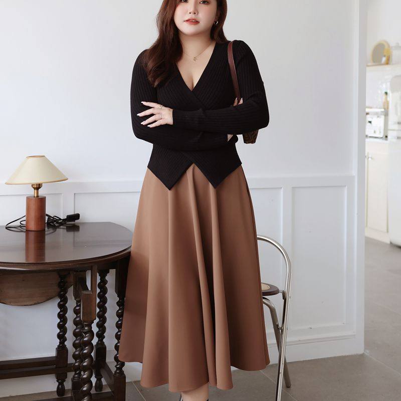 happyhut品牌加肥加大码女装200斤胖mm冬V领温柔风正肩针织衫上衣