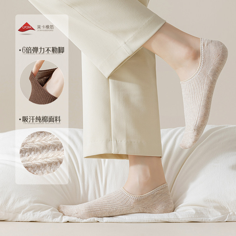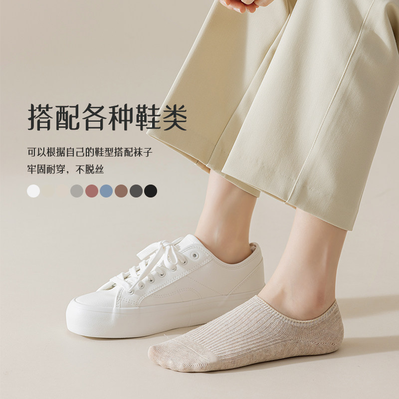 船袜女士防滑不掉跟夏季100%纯棉纱线双针隐形袜子春秋款浅口短袜