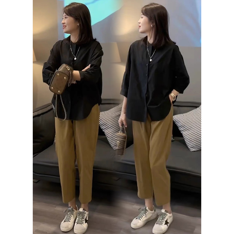 韩版慵懒风气质减龄衬衫女小众设计感蝙蝠袖宽松显瘦纯色小衫上衣