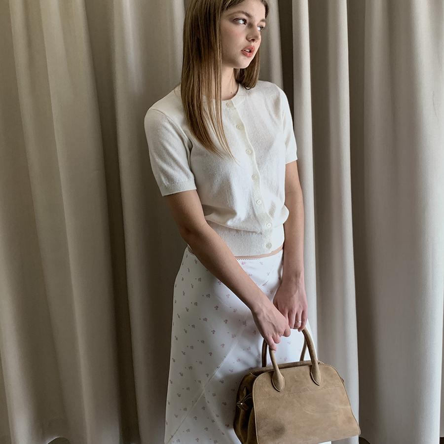 Deessesicile智性模版简约纯色针织短袖上衣长袖开衫外套两件套女