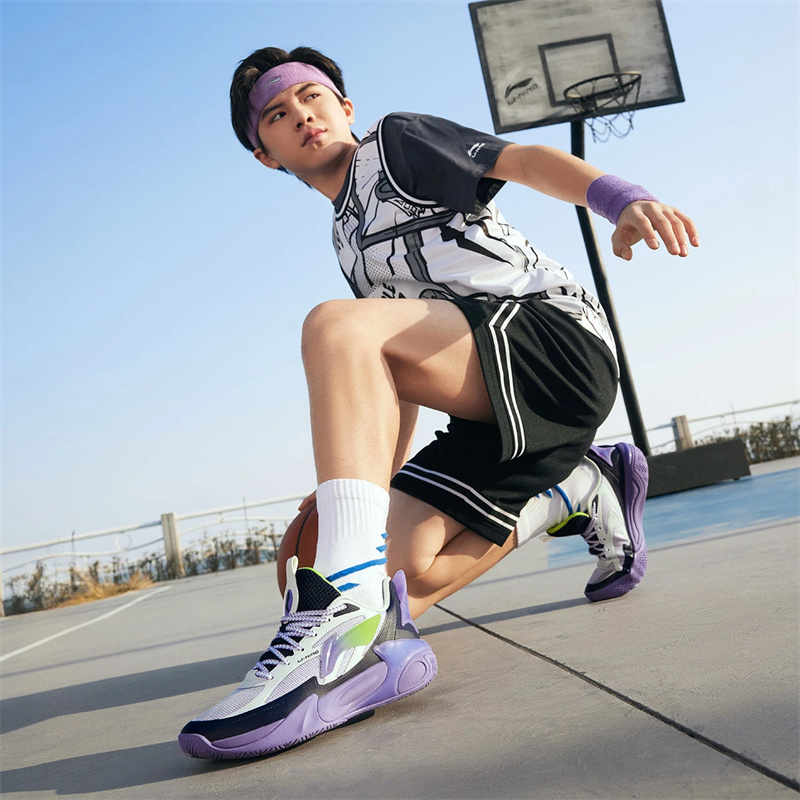 李宁儿童篮球鞋2025春季男大童风影2.0 V2 舒适回弹耐磨低帮童鞋