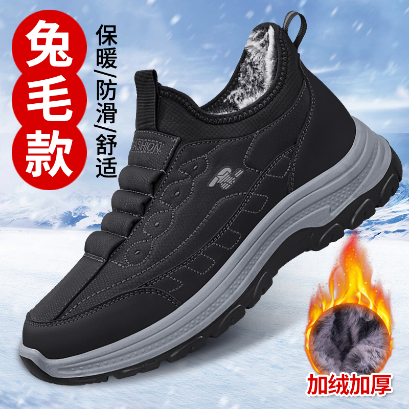 老北京布鞋官方旗舰店男冬季保暖加绒加厚雪地靴防滑防水爸爸棉鞋