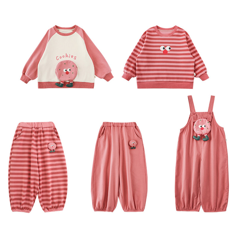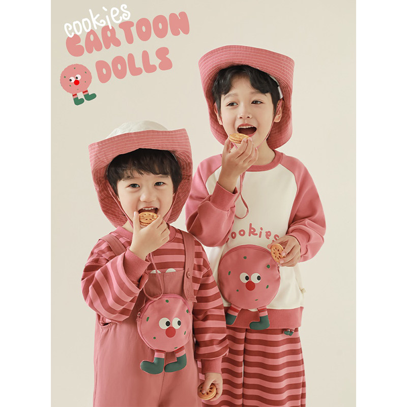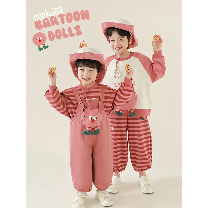 幼悠男童立体玩偶背带裤2025春秋新款儿童条纹插肩袖T恤裤子套装