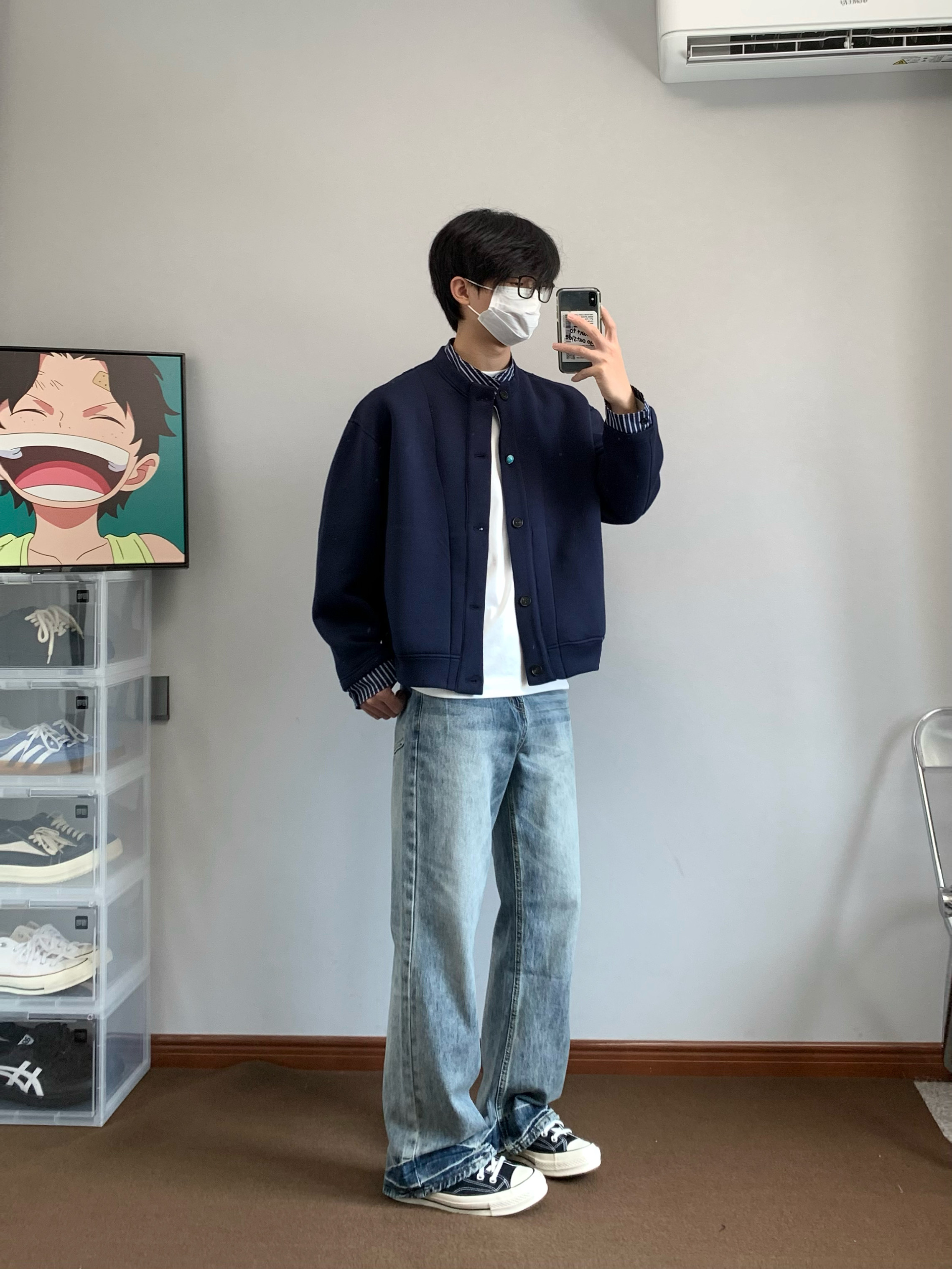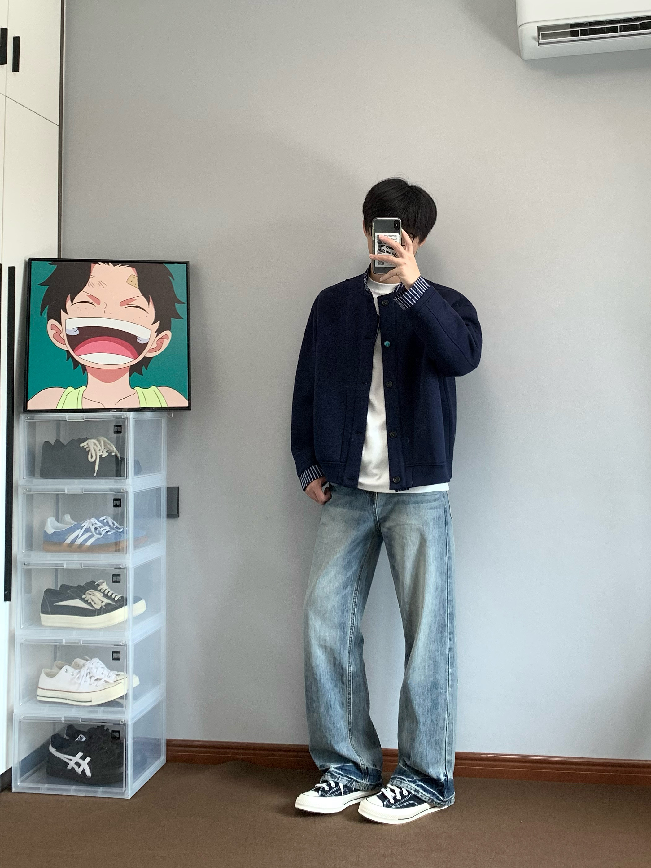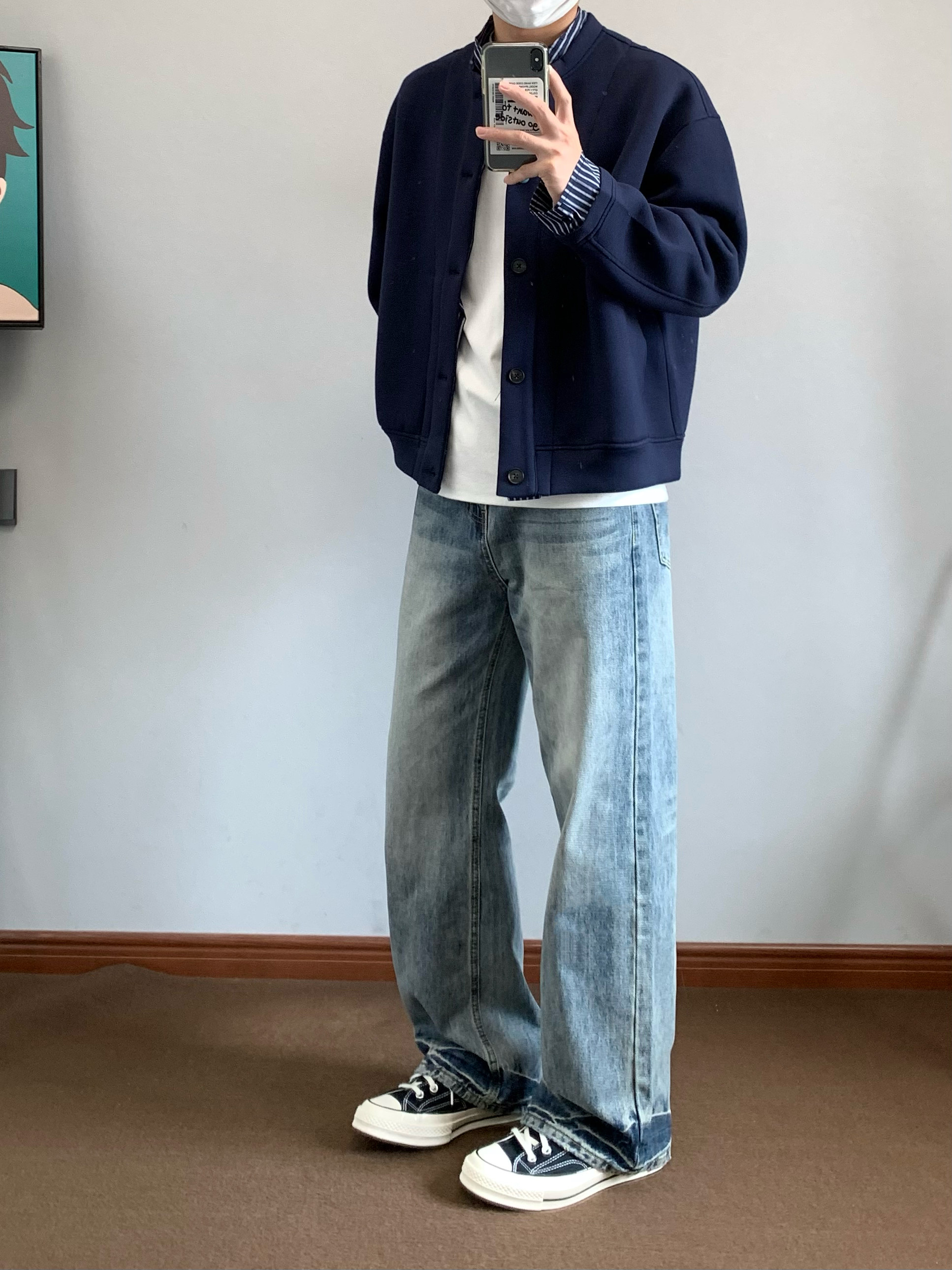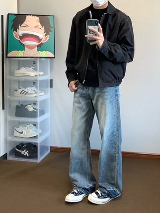 XANYP 美式复古cleanfit猫须纹做旧水洗直筒微喇牛仔裤百搭长裤男