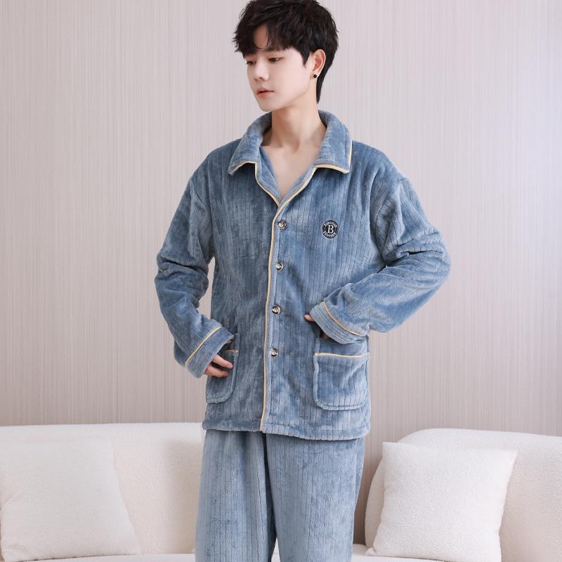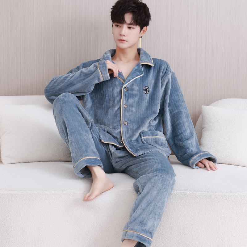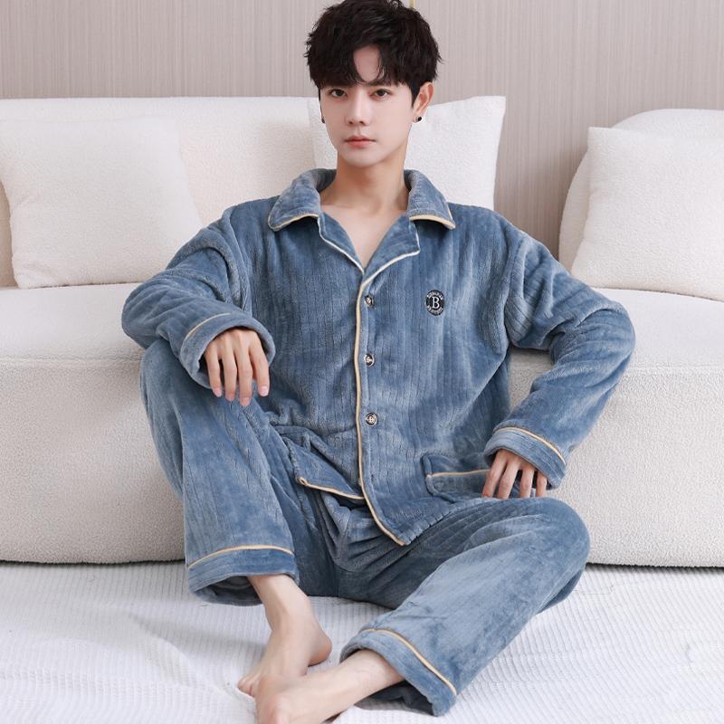 2025新款珊瑚绒睡衣男秋冬季加绒加厚法兰绒男士青少年男生家居服