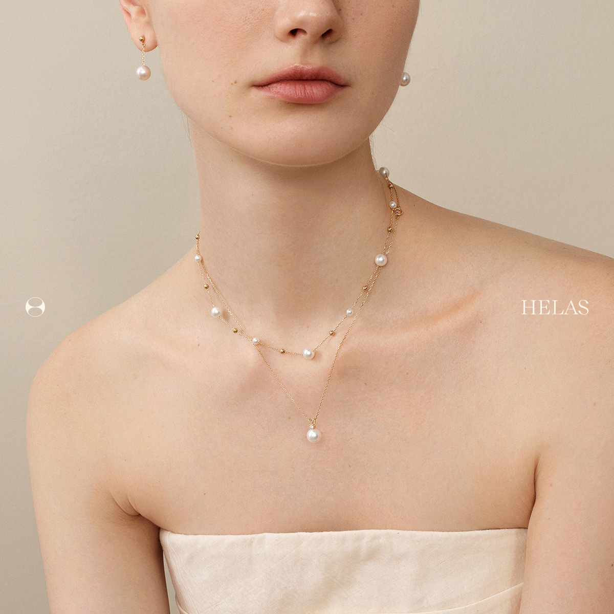HELAS赫拉18K金海水珍珠钻石项链