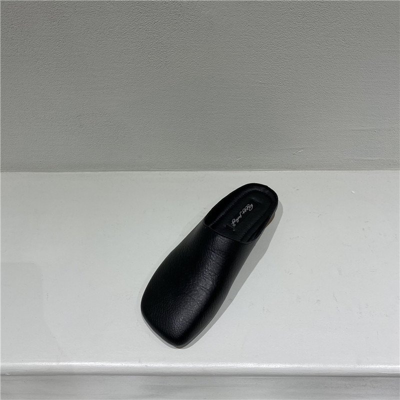 韩国时尚包头半拖鞋女外穿平底22年春季软皮防滑方头一脚蹬懒人鞋