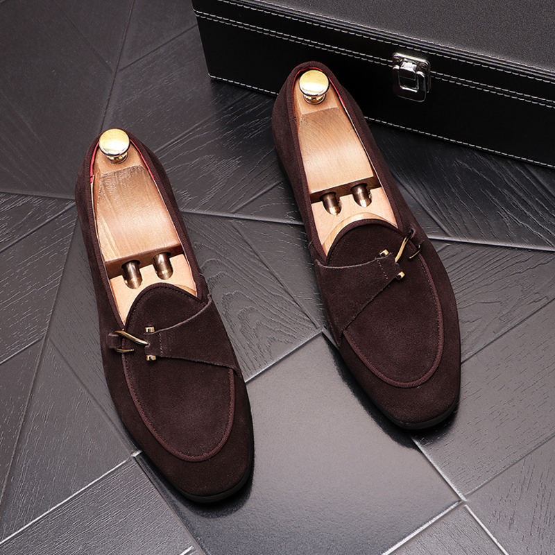 男鞋韩版潮英伦风磨砂增高尖头皮鞋男套脚休闲鞋时尚豆豆鞋男鞋子