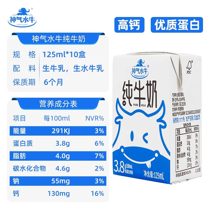 神气水牛纯牛奶儿童学生营养早餐牛奶125ml*10盒整箱