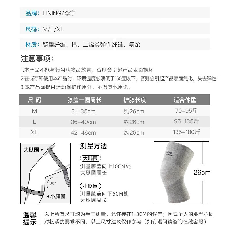 李宁护膝盖套保暖关节防寒加厚用