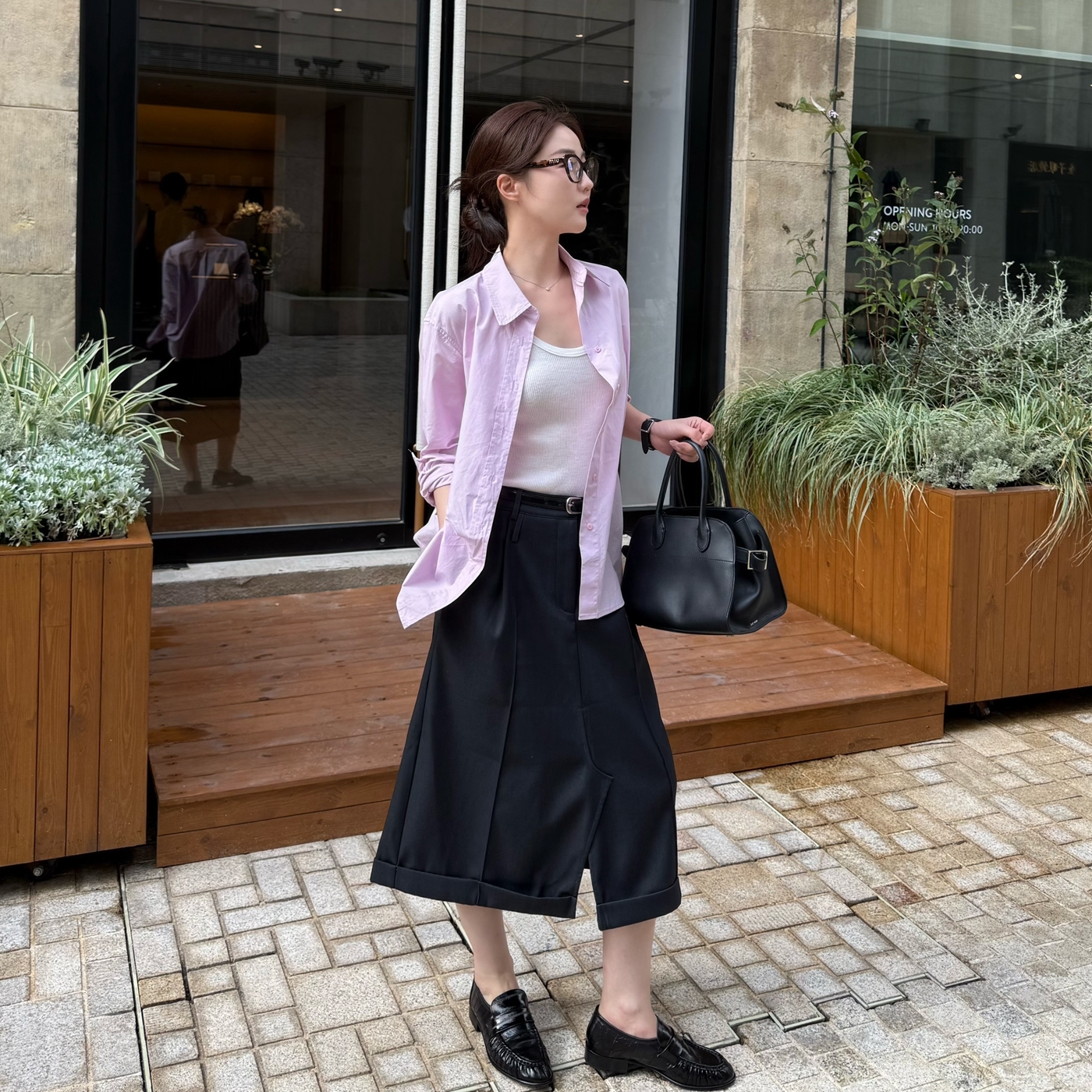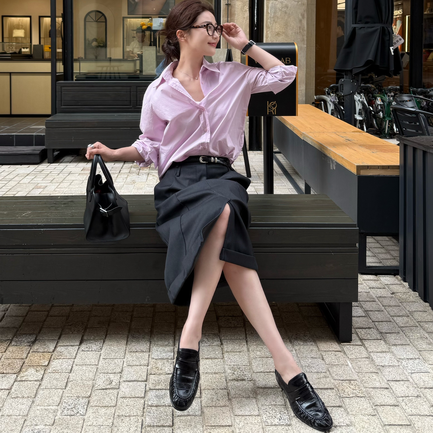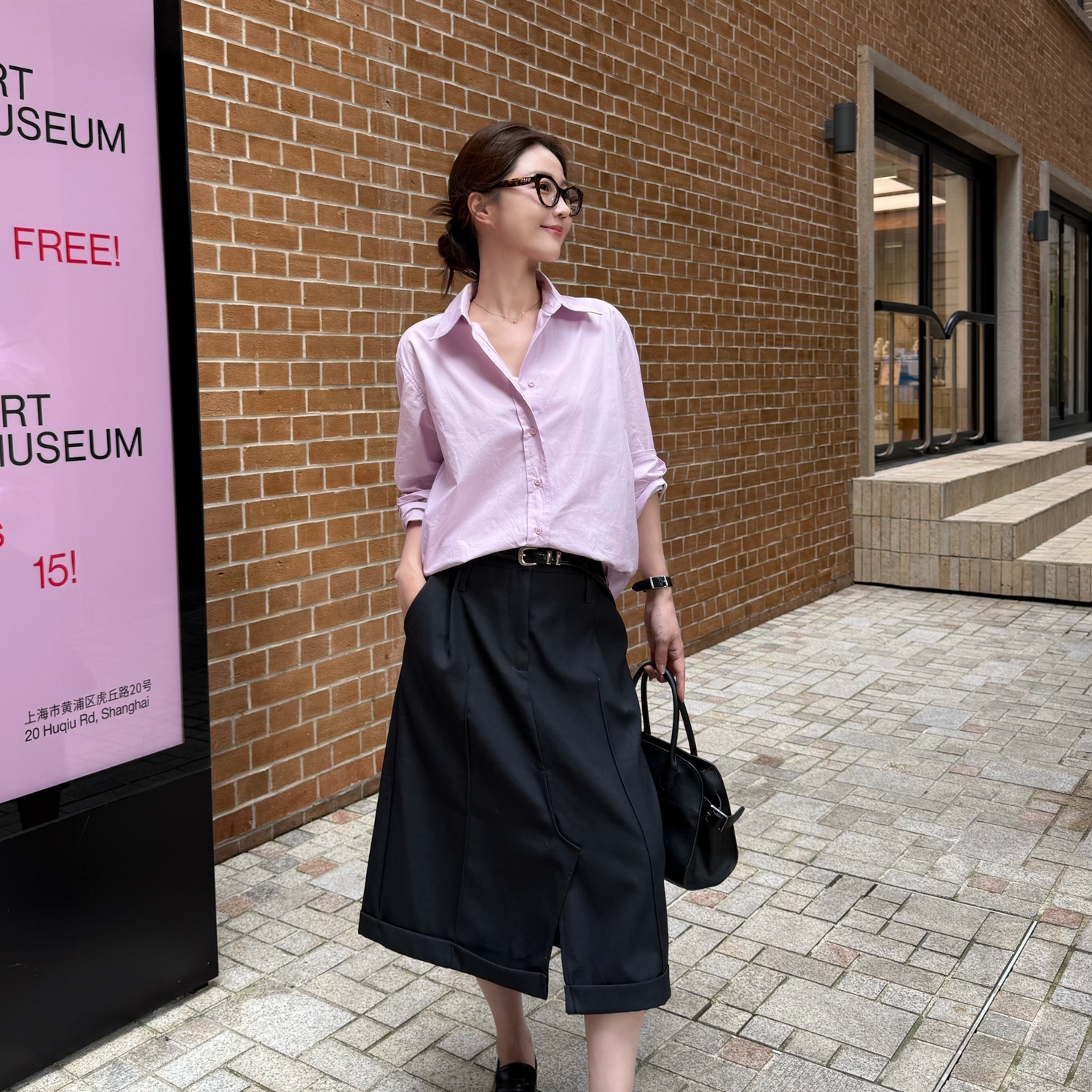 曹大曼 显白气质紫粉色设计感通勤衬衫显瘦百搭松弛感纯棉衬衣秋